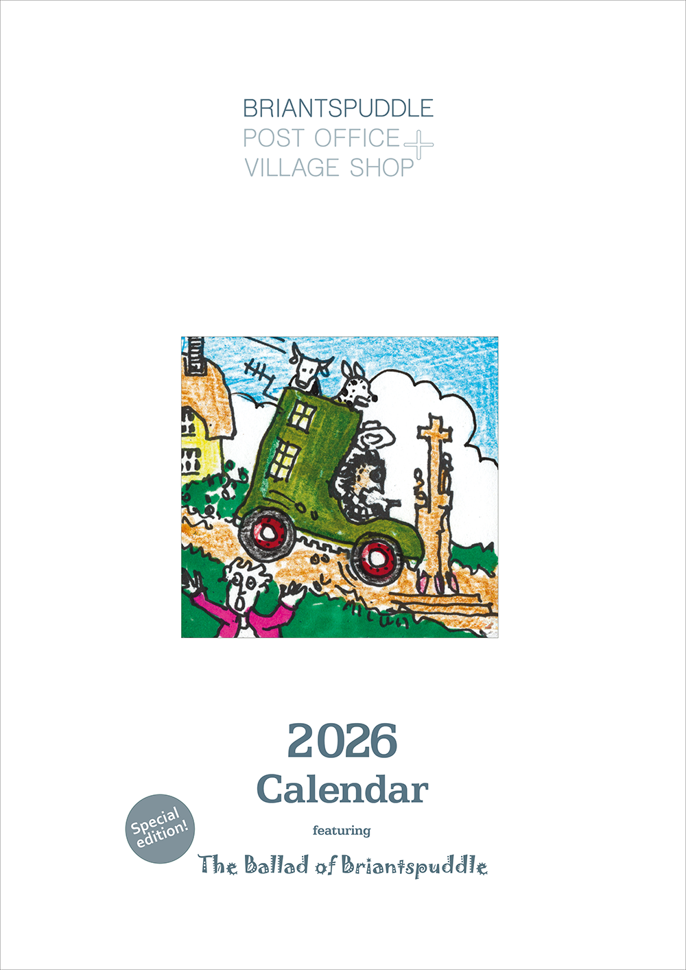 We still have calendars available in the shop at £7.00 each, plus hard-backed envelopes for 50p, so please support what is a firm Briantspuddle Shop tradition! This year’s calendar is particularly good value entertainment as it includes ‘The Ballad of Briantspuddle’.